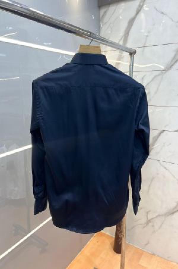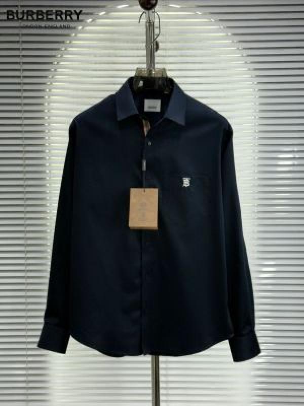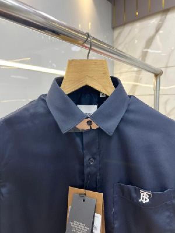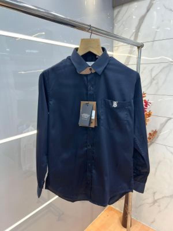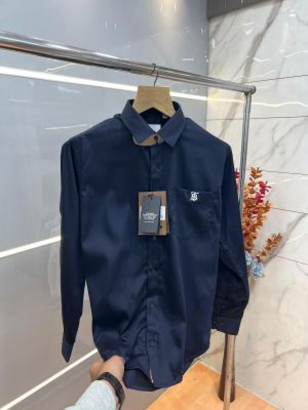 - Burberr y Navy Premium Embroidered Logo Shirt With custom Branded Button Tagging And Brand Packing 3748