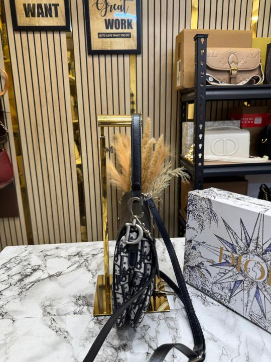 Christian Dio_r Oblique Saddle Crossbody Bag With Box And Dust Bag (Black)(78812)